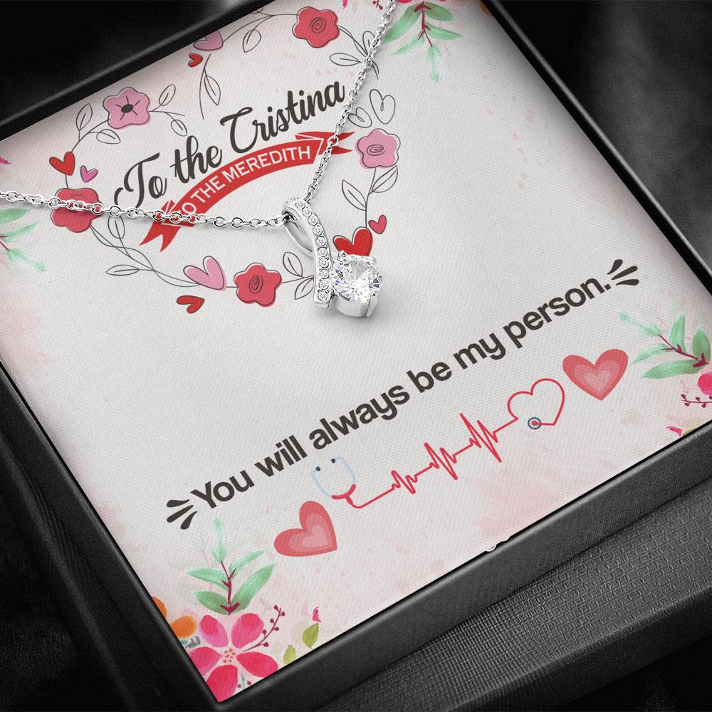 Melt her heart with this ALLURING BEAUTY necklace gift! The petite ribbon shaped pendant is finished with 14K white gold over stainless steel, and is embellished with dainty clear crystals surrounded by a sparkling 7mm round cut Cubic Zirconia.
