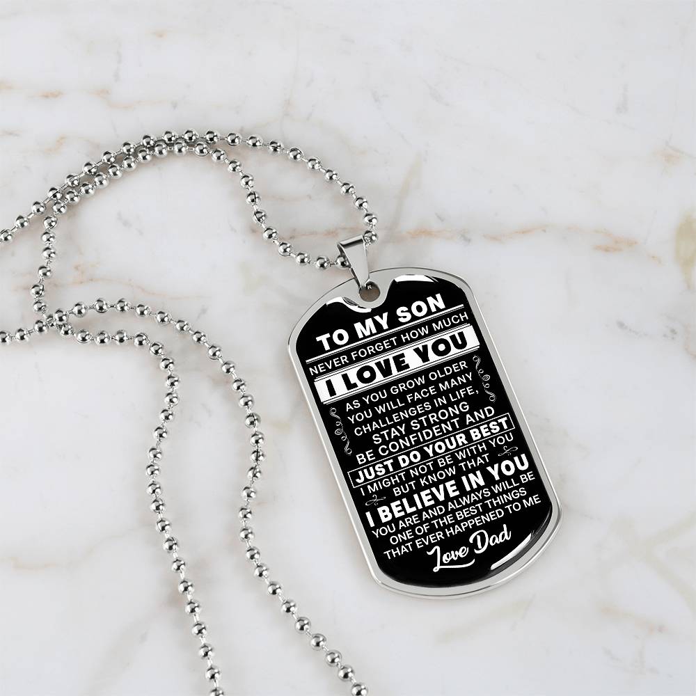 This meaningful dog tag necklace is a daily reminder of your love, support, and belief in him. Designed to inspire confidence as he grows older, it’s a powerful keepsake he can carry through every stage of life. Made from durable stainless steel for long-lasting wear.