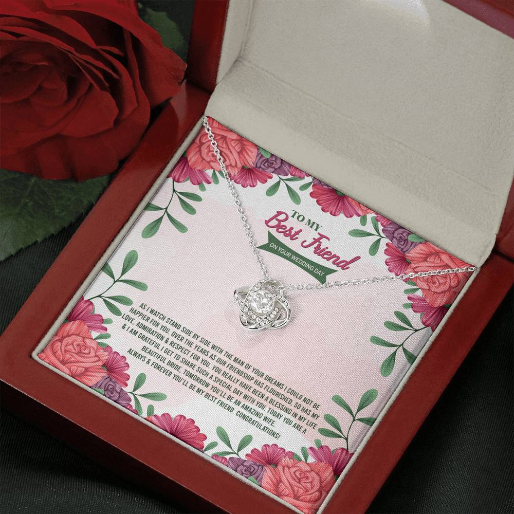 "As I watch stand side by side with the man of your dreams I could not be happier for you. Over the years as our friendship has flourished, so has my love, admiration & respect for you. You really have been a blessing in my life & I am grateful I get to share such a special day with you. Today you are a beautiful bride, tomorrow you'll be an amazing wife. Always & forever you'll be my best friend. Congratulations"