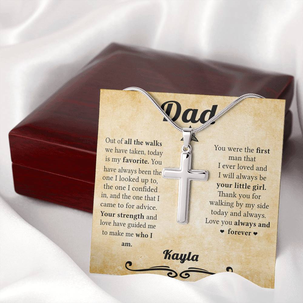 "Out of all the walks we have taken, today is my favorite. You have always been the one I looked up to, the one I confided in, and the one that I came to for advice. Your strength and love have guided me to make me who I am. You were the first man that I ever loved and I will always be your little girl. Thank you for walking by my side today and always. Love you always and forever."