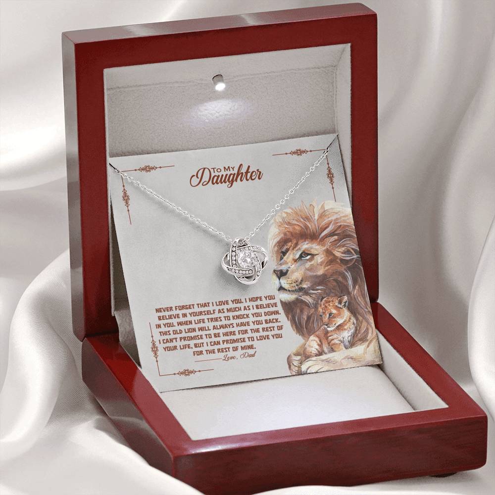 "Never forget that I love you. I hope you believe in yourself as much as I believe in you. When life tries to knock you down. This old lion will always have you back. I can't promise to be here for the rest of your life, but I can promise to love you for the rest of mine."