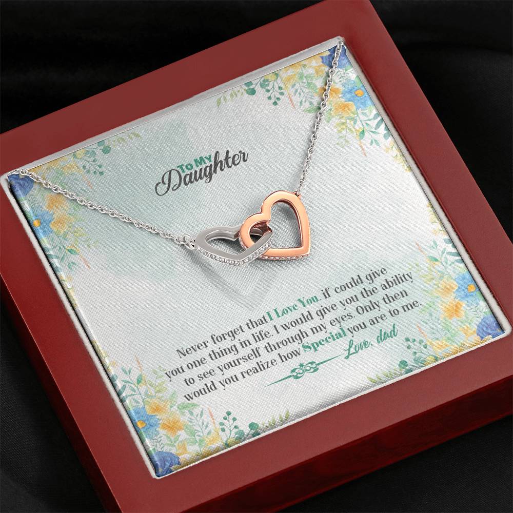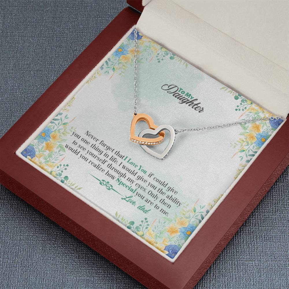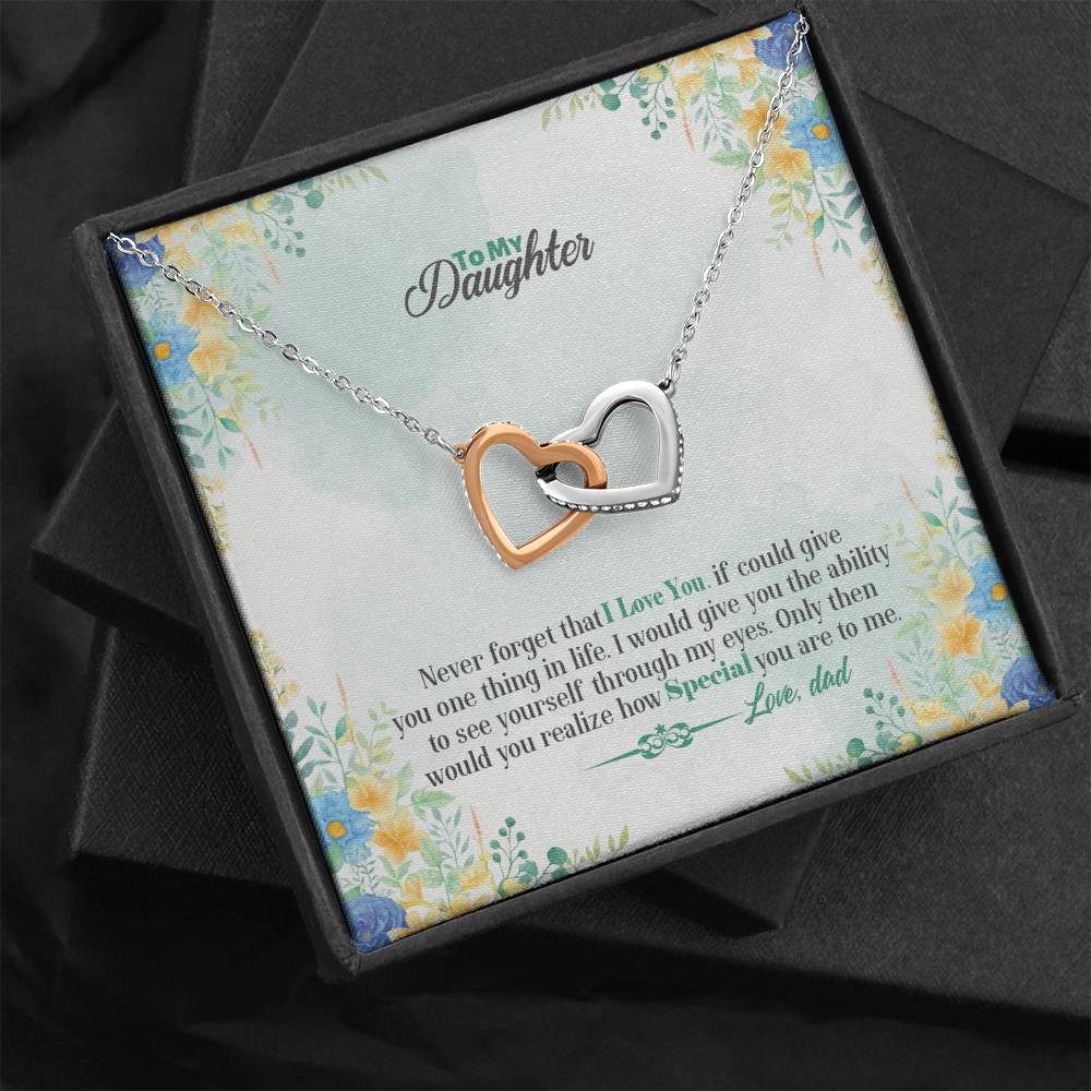 "Never forget that I love you. If could give you one thing in life. I would give you the ability to see yourself through my eyes. Only then would you realize how special you are to me."