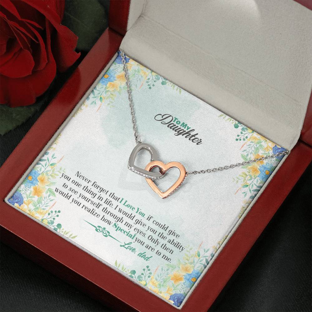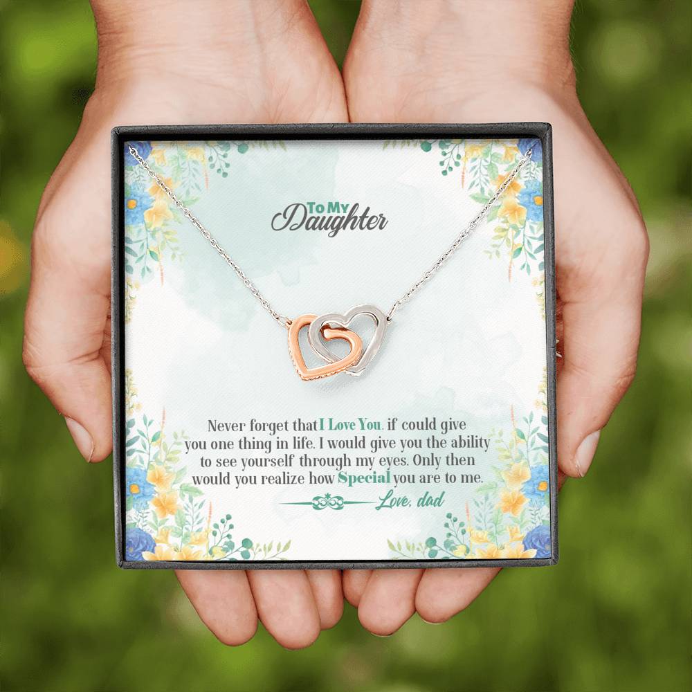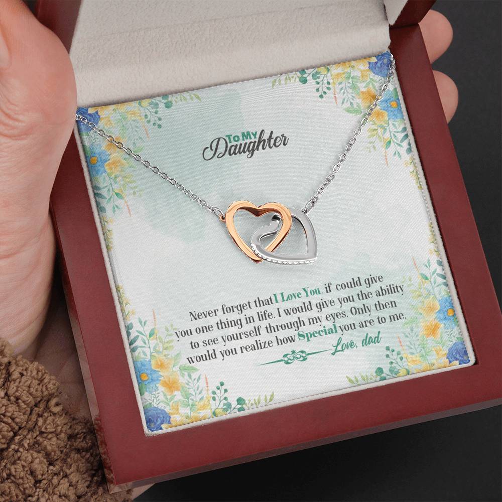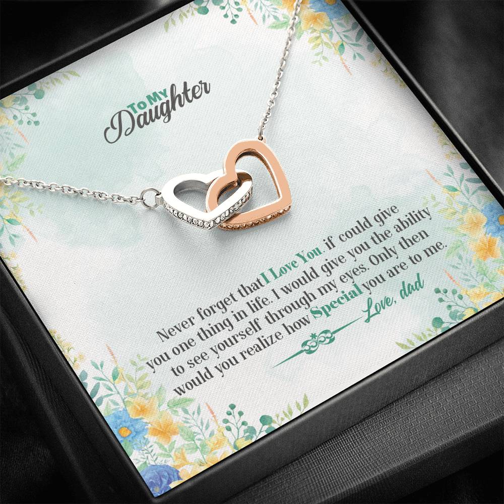 "Never forget that I love you. If could give you one thing in life. I would give you the ability to see yourself through my eyes. Only then would you realize how special you are to me."