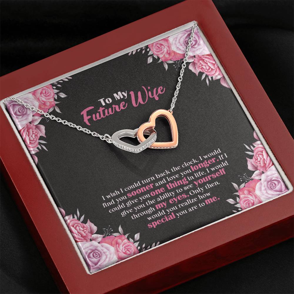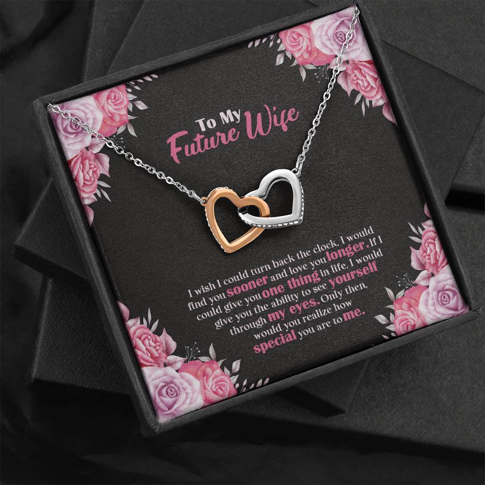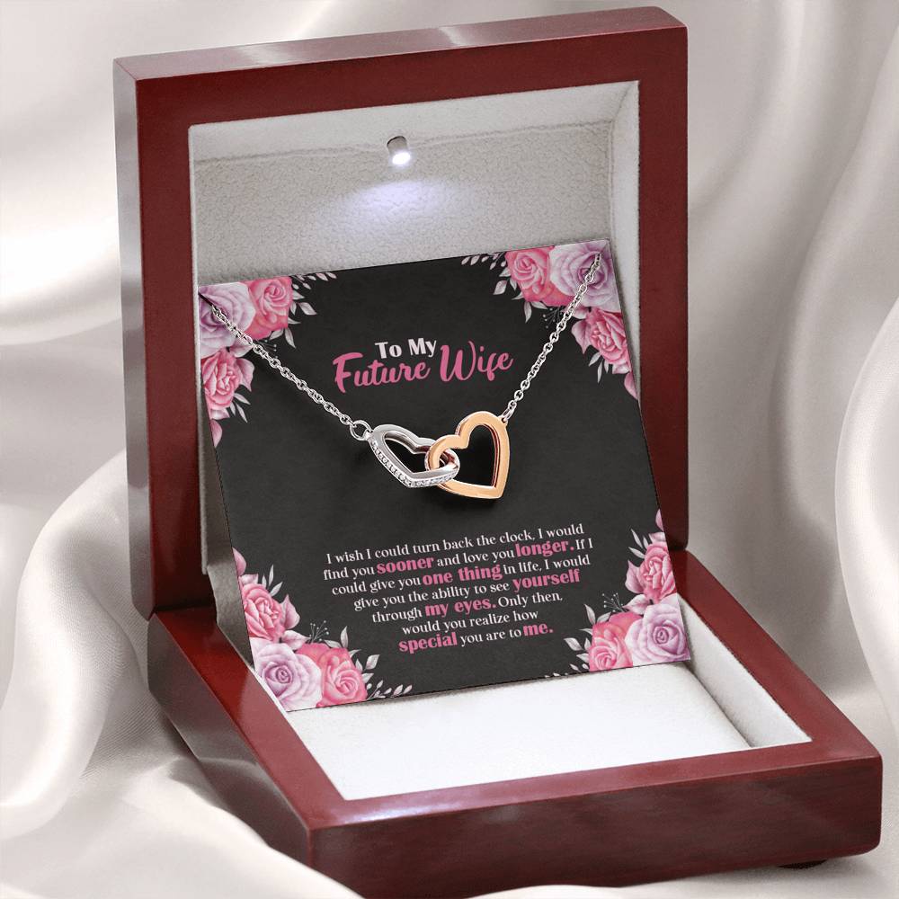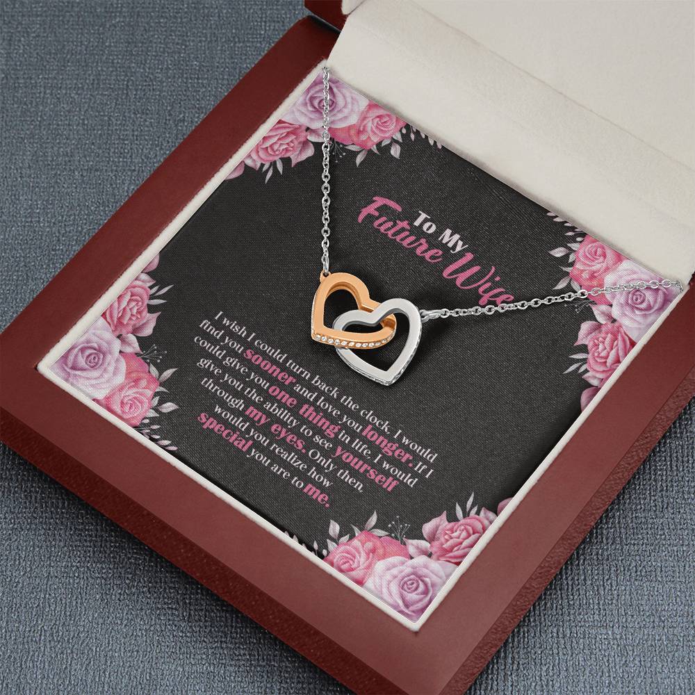 "I wish I could turn back the clock. I would find you sooner and love you longer. If I could give you one thing in life, I would give you the ability to see yourself through my eyes. Only then, would you realize how special you are to me,"