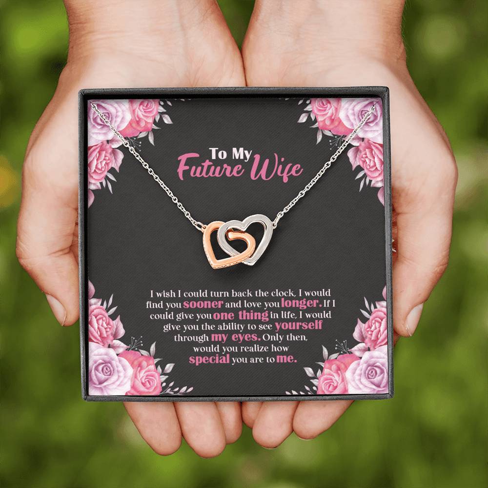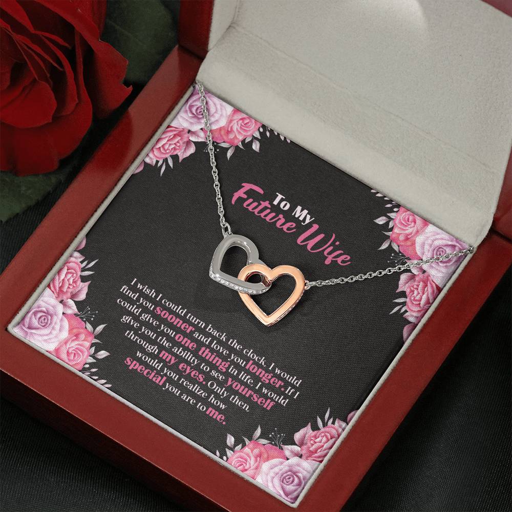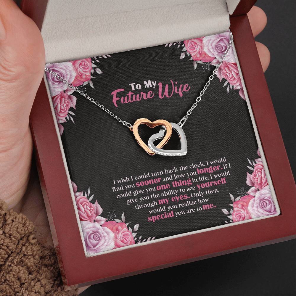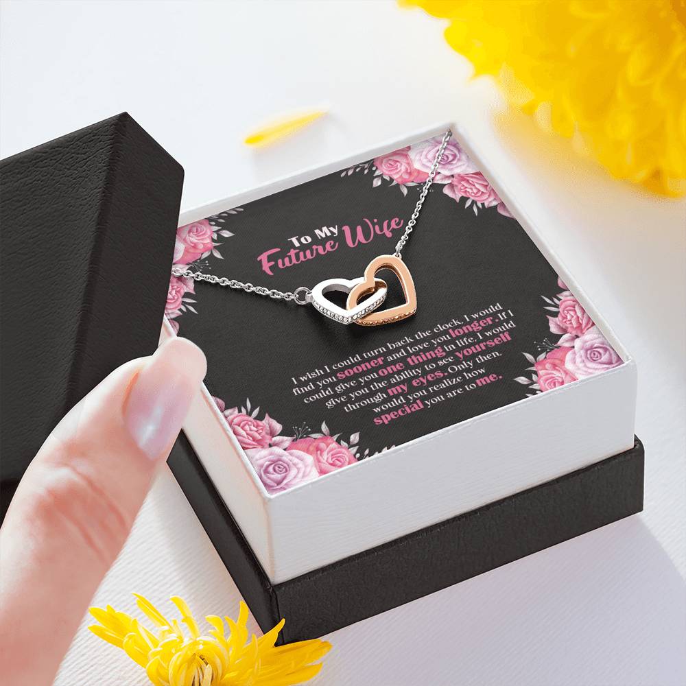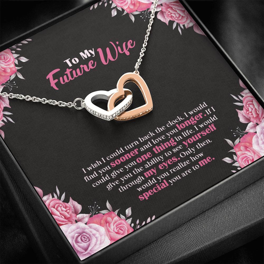 "I wish I could turn back the clock. I would find you sooner and love you longer. If I could give you one thing in life, I would give you the ability to see yourself through my eyes. Only then, would you realize how special you are to me,"