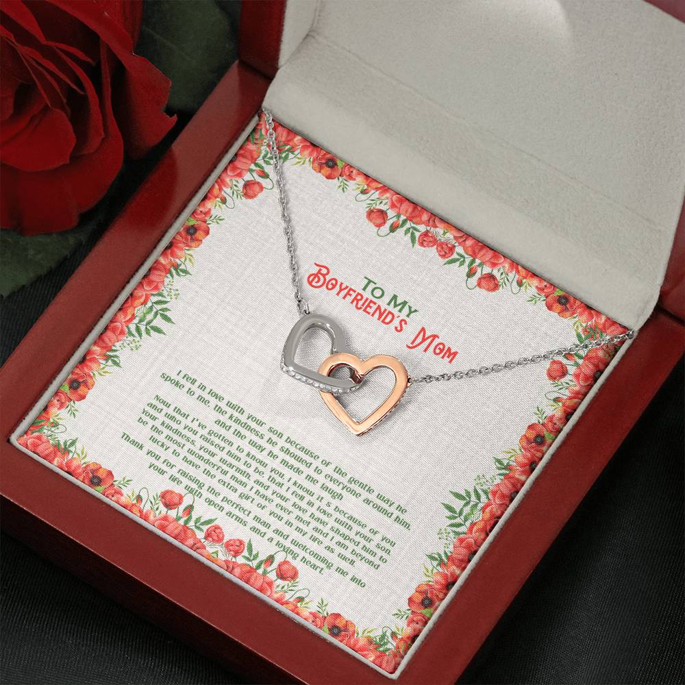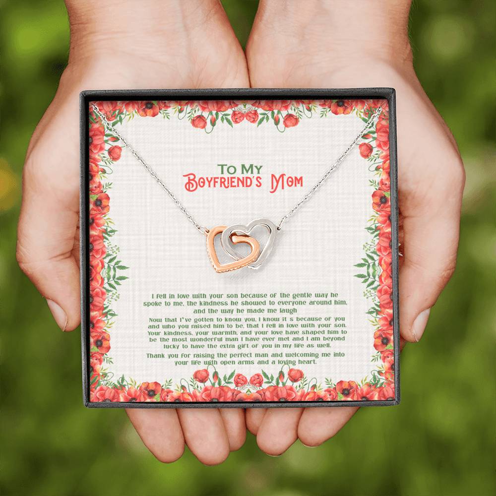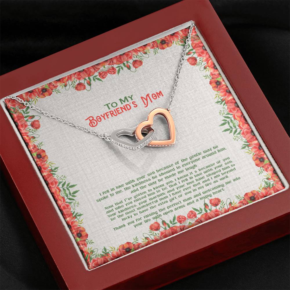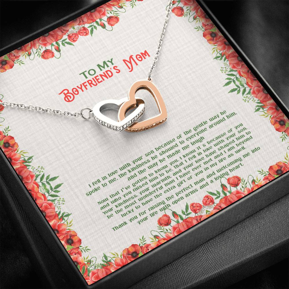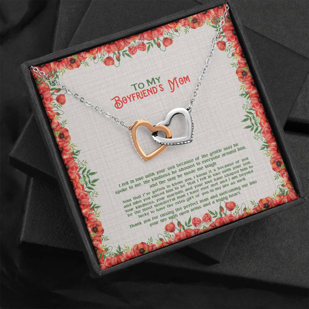 "I fell in love with your son because of the gentle way he spoke to me. The kindness he showed to everyone around him, and the way he made me laugh. Now that I've gotten to know you. It's because of you and who you raised him to be, that I fell in love with your son, your kindness, your warmth, and your love have shaped him to be the most wonderful man I have ever met and I am beyond lucky to have you the extra gift of you in my life as well. Thank you for raising the perfect man and welcoming me into your life with open arms and a loving heart."